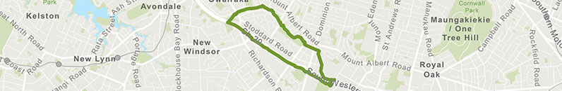 Turn left at the bottom of the bridge ramp and head along the south western cycleway, being sure to cross at the traffic lights at Maioro Street and Dominion Road.