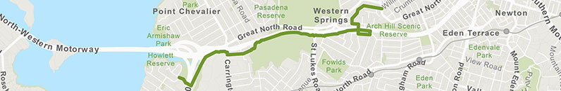 The path starts at the Grey Lynn shops and heads down Tuarangi Road onto Ivanhoe Road.