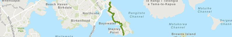 You can cycle the route in reverse from Devonport (a 12 minute ferry ride from Auckland ferry terminal), or make a shorter round trip using the Bayswater Ferry.