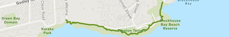 Start at the end of Portage Road and follow the steps down to Tauihu / Green Bay Beach. At low tide, children can hunt for crabs and sea anemone before starting on their walk.