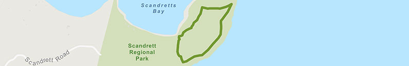 Begin your walk next to the main carpark area (public toilets and drinking water are available here). Head up the park road and look out for the blue signposts marking the Mullet Point Loop. The climb is steep, but you'll be rewarded with views back over Scandretts Bay and the regional park.