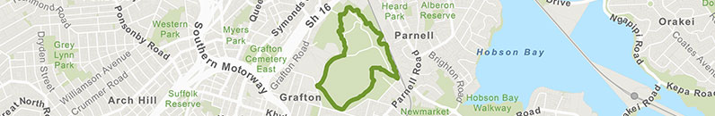 Starting on Claybrook Road in Parnell, find the signposted Domain Walk. Follow the gravel track through the established native bush.