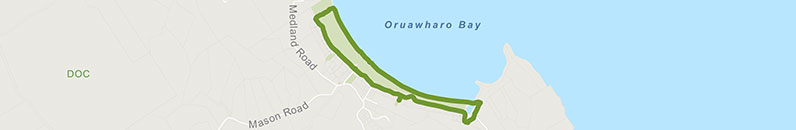 Start at the middle of the beach, at the end of Oruawharo Lane. Head north along Sandhills Road, right to the end.