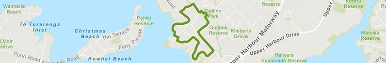 Explore parkland, native bush and coastal views in Greenhithe. The loop path is a combination of local footpaths, quiet roads and bush tracks and offers close-up views of the Upper Waitematā Harbour.
