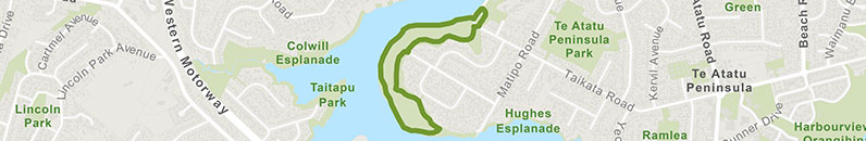 The flat path circles around Taipari Strand and along the water's edge adjacent to the mudflats. The gravel path is pram-friendly and also suitable for bikes.