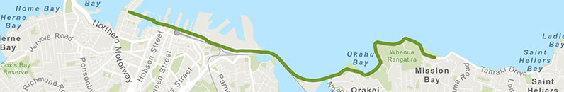 The whole route is off-road and beside the water of the Waitemata harbour with views to Rangitoto.