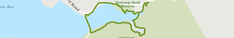 Parking is available at the Waiheke Museum on Onetangi Road. Have a roam around the heritage buildings and displays. Just to the right (west) of the museum is a track to the sports park, which crosses a lovely curved bridge over the wetland, with stories of the very first Maori waka that arrived here. Follow the marked route around two golf fairways, to enter the sports park near the tennis courts.