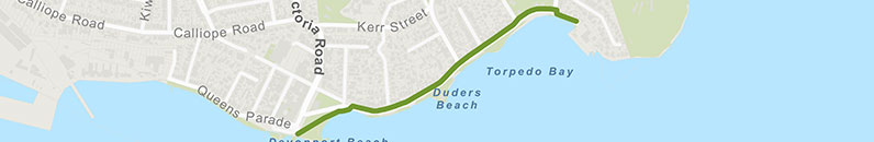 This shared path takes you from Devonport village to Torpedo Bay Reserve, along the Waitemata Harbour waterfront. The route along King Edward Parade is flat.